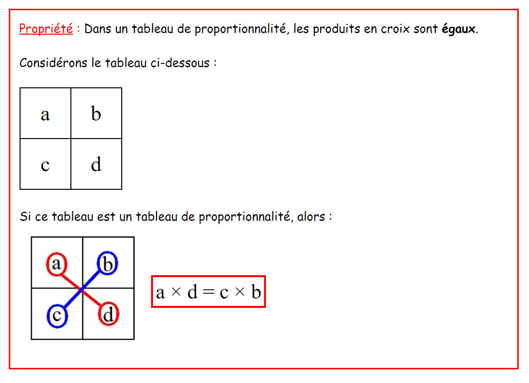 L'égalité des produits en croix est une égalité entre deux produits.