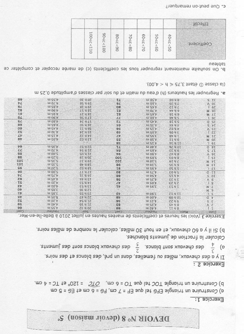 Il faut donc remplir un tableau du type en triant les deux colonnes :