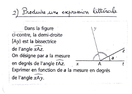 Pense que \(\widehat{xAy}+\widehat{yAz}+a = 180\) et que \(\widehat{xAy}=\widehat{yAz}\) déduis-en la réponse.