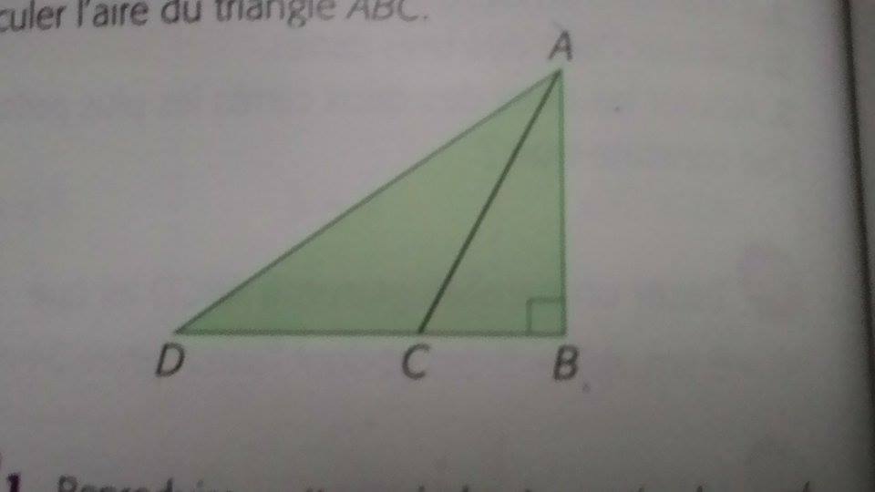 Donc pour trouver l'aire d'ABC je fais l'aire de ABD moins celle de ACD ? Soit : Aadc = 4x4 / 2 = 8m² puis 11.7m²-8 = Aabc =3.7m²