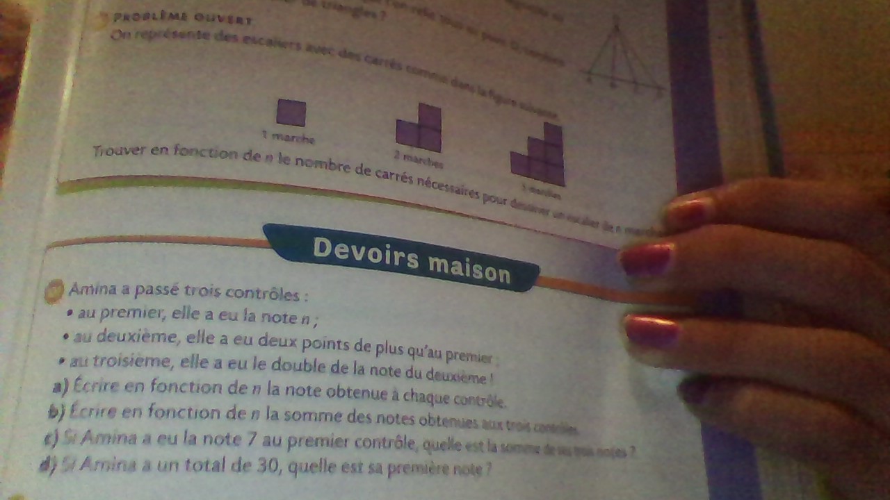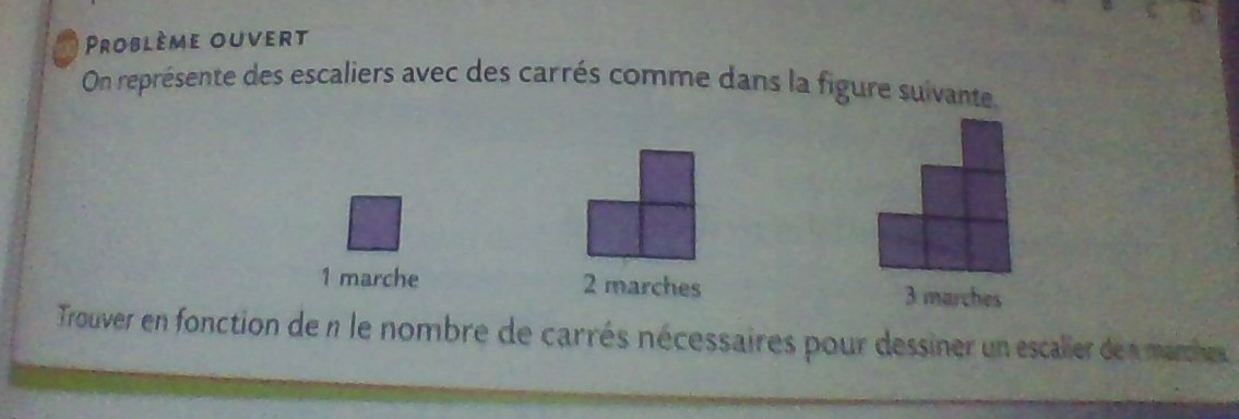 trouver en fonction de n le nombre de carrés nécessaires pour dessiner un escalier de n marches