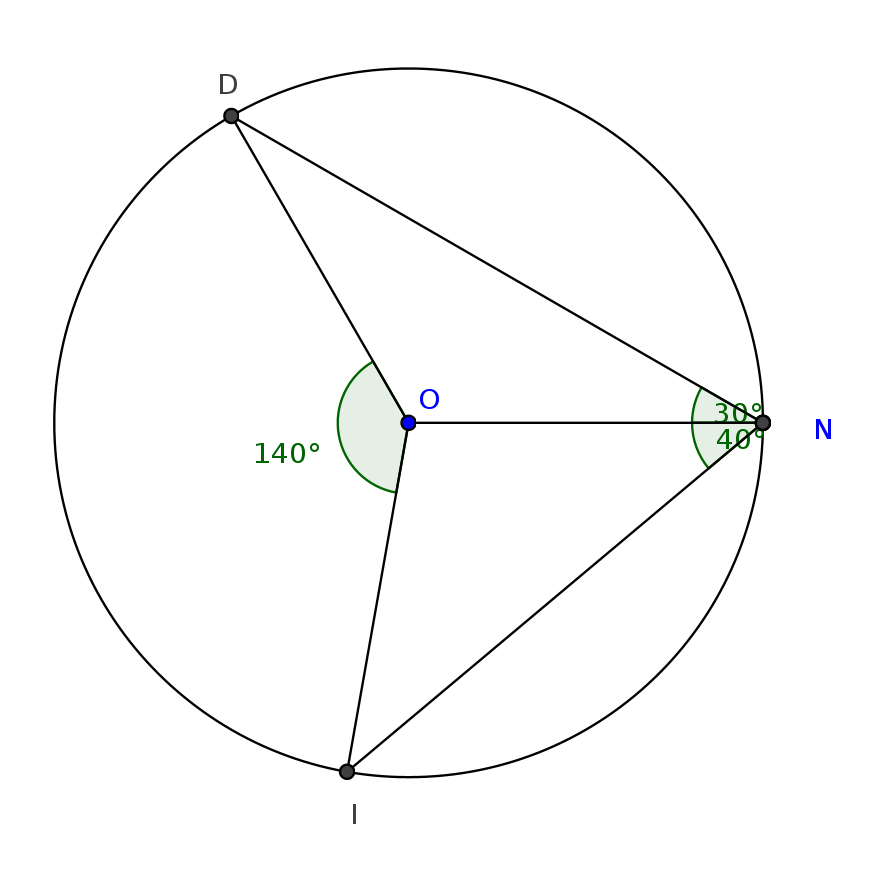 c) Placer un point I sur ce cercle et de l'autre coté de la droite (ON) tel que ONI=40°