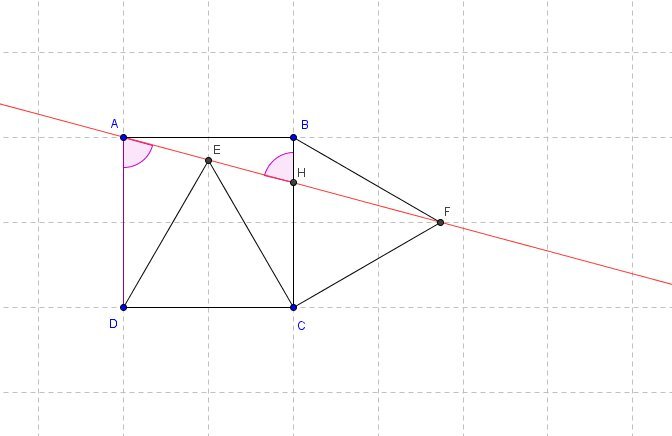 J'ai fait une erreur dans un des angles, il faut lire : pour commencer, que peux-tu dire des angles \(\widehat{EAD}\) et \(\widehat{AHB}\) où le point H est le point d'intersection des droites (BC) et (AF) ? Il faut évidemment justifier ta réponse.
