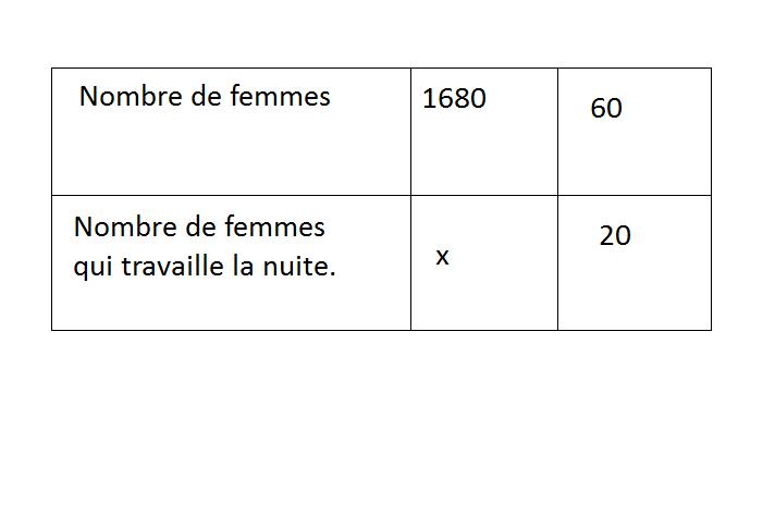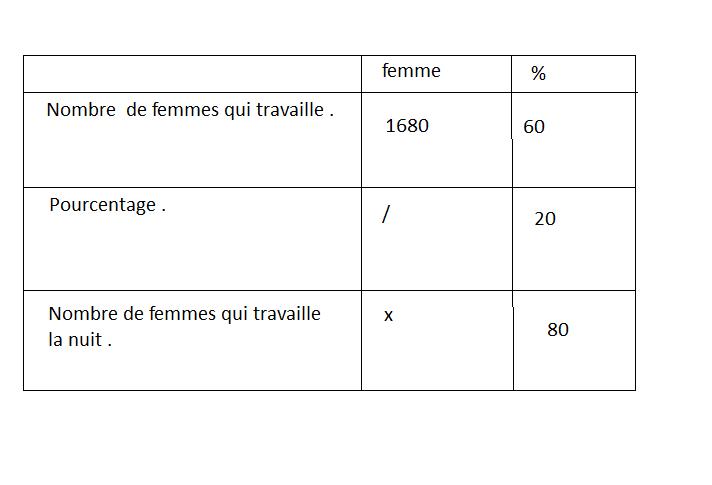 Si c'est 80%, ton calcul \(\frac{1680\times80}{100}=1344\), te donne directement le nombre de femmes travaillant la nuit.