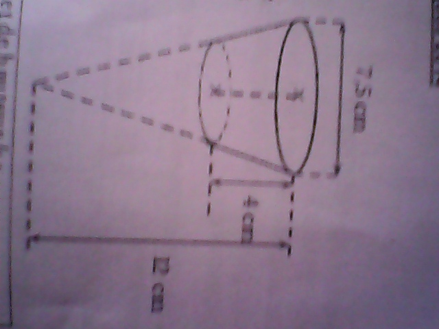 Donc ici pour calculer le volume de ton moule, il faut faire la différence entre le volume du cône de hauteur 12 cm moins celui de hauteur 8 cm.