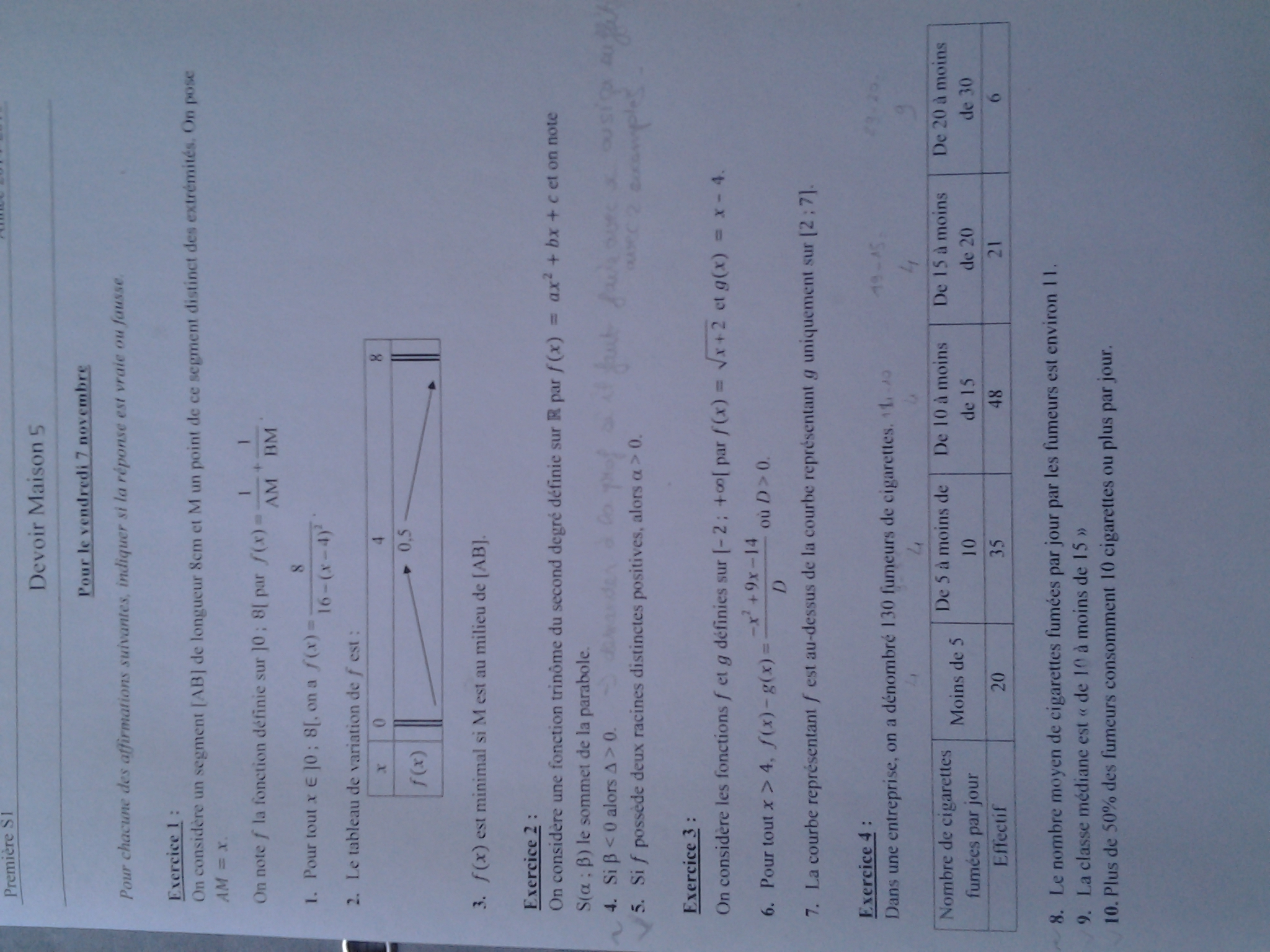 ●exercice 4: 8. Est ce que le nombre de cigarettes fumées par jour est : 4, 4 (car 9-5 ), 4 ( car 14-10), 4 ( 19-15),9 (29-20) est ce que c est ca ??