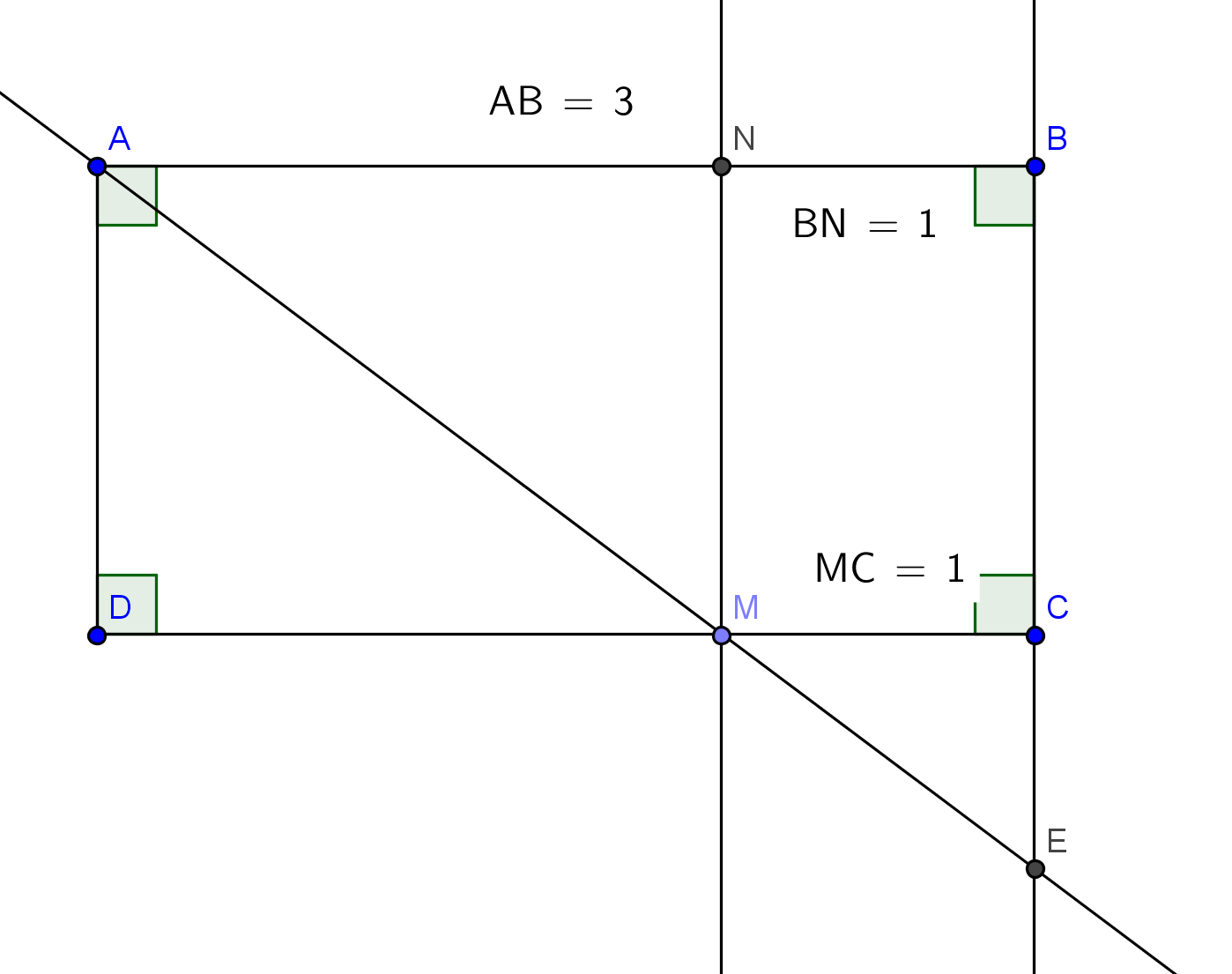 ABCD est un rectangle d'aire 4.5cm² tel que AB tel que AB=3 . M est le point de [CD] tel que CM=1cm (MA) coupe (BC) en E .