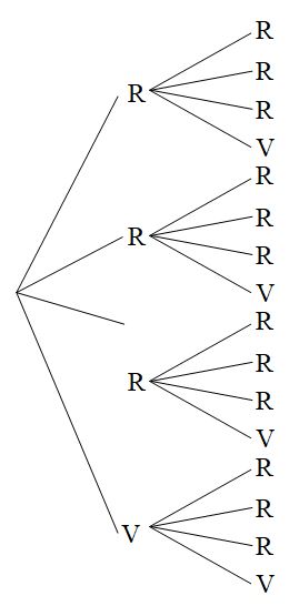 Si tu comptes toutes tes issues, il y en a 16 et une seule issue donne "Vert-Vert", donc la probabilité est de 1/16.