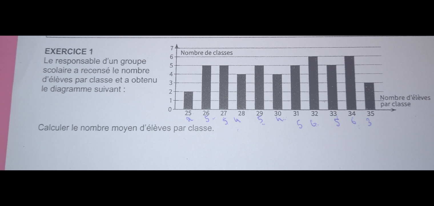 Bonjour je ne comprends pas la consigne ici il dit qu'il faut "calculer le nombre moyen d'élève par classe "