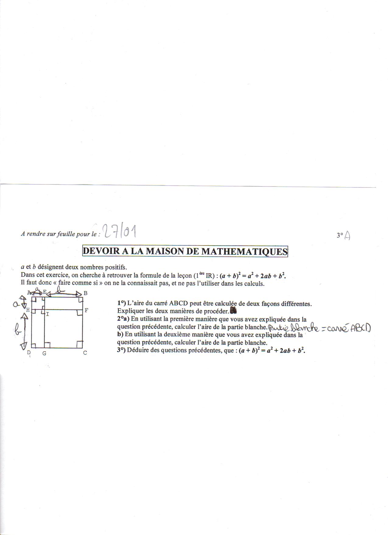 Donc l'aire du grand carré est la somme des aires des 4 figures (2 carrés et 2 rectangles).