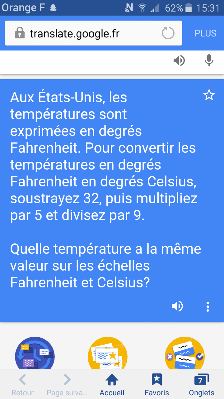 si une température correspond à \(x\) degrés Farenheit, alors elle vaut \((x-32)\times \dfrac{5}{9}\) degrés celsius.