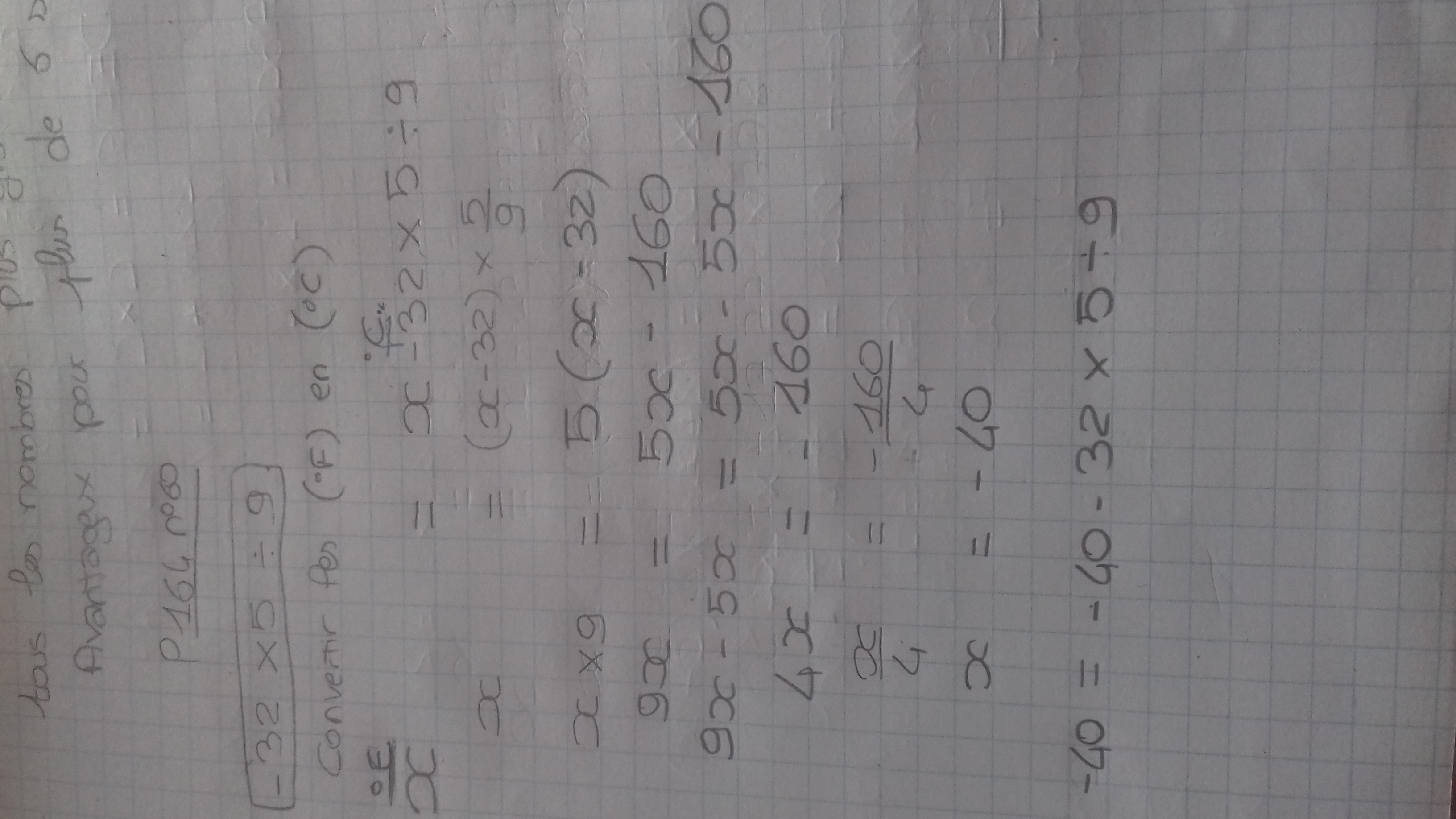 Tu obtiens ainsi 9x = 5(x-32).