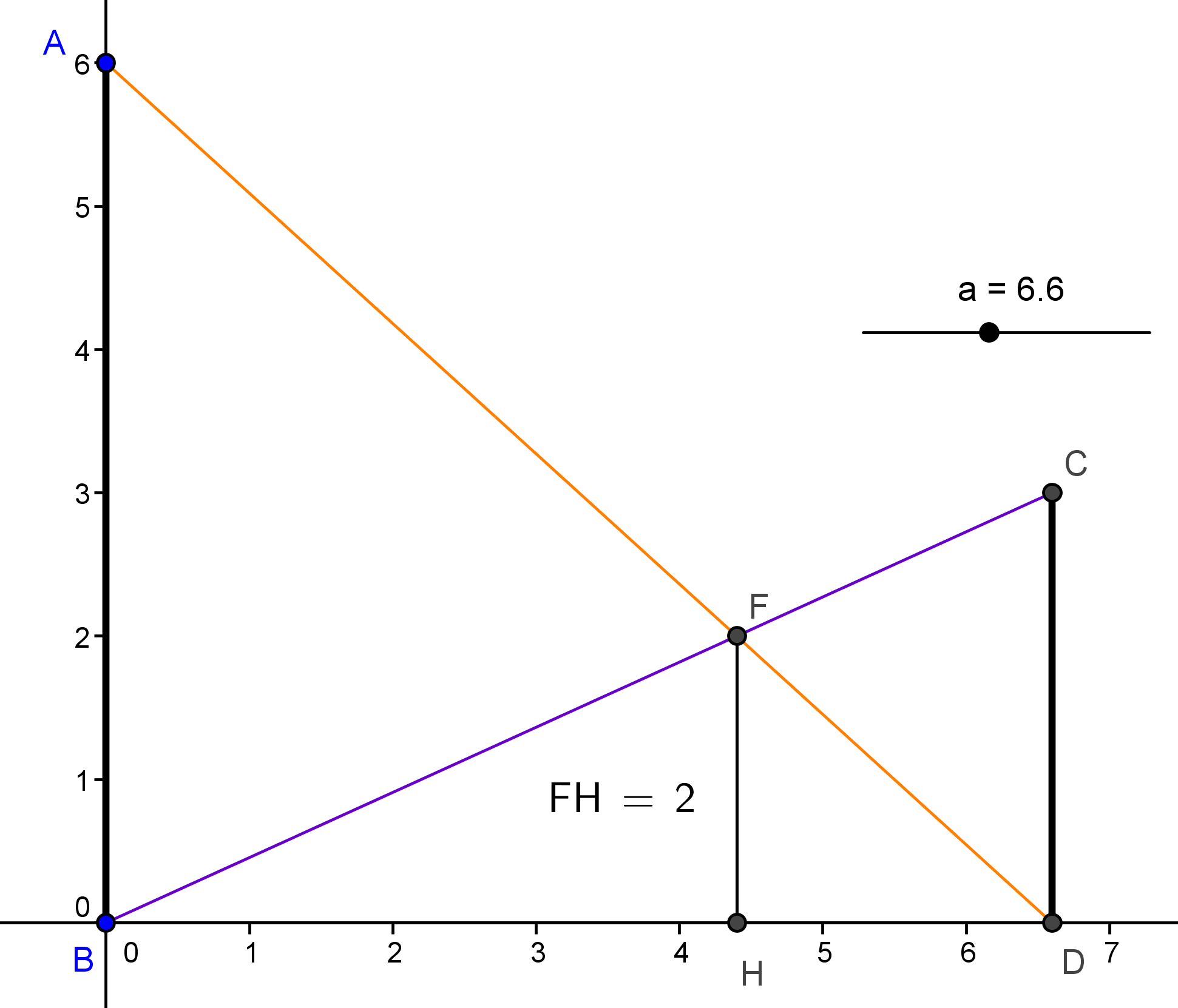 Normalement, tu dois trouver que BH=2DH donc H est situé au tiers de BD, donc DH est le tiers de BD et avec le théorème de Thalès, tu trouves que FH est le tiers de AB donc FH=2 toujours !