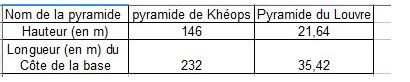 2)a) D'après le tableau suivant, expliquer pourquoi on dit que la pyramide du Khéops a servi de modèle pour la construction de la pyramide du Louvre.