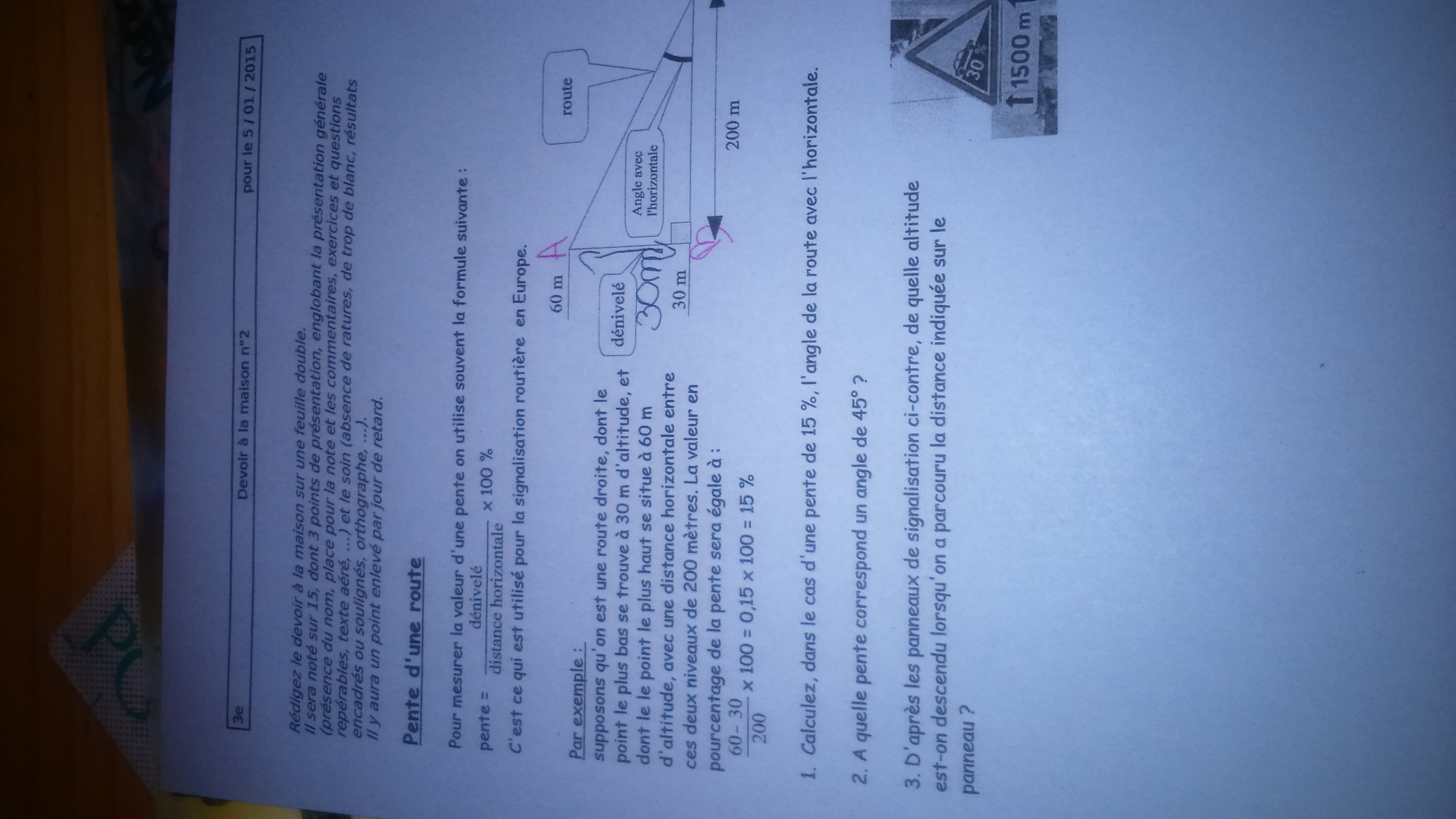 la pente de la route définie dans ton exercice correspond à un nombre trigonométrique :