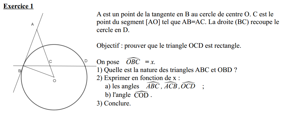 ABC = ACB et (90-x) = ACB et OCD = (90-x).