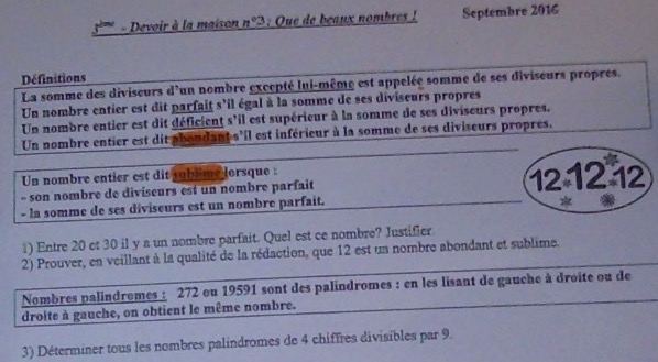 1)prouvez en veillant à la qualité de la rédaction ,que 12 est un nombre abondant et sublime.