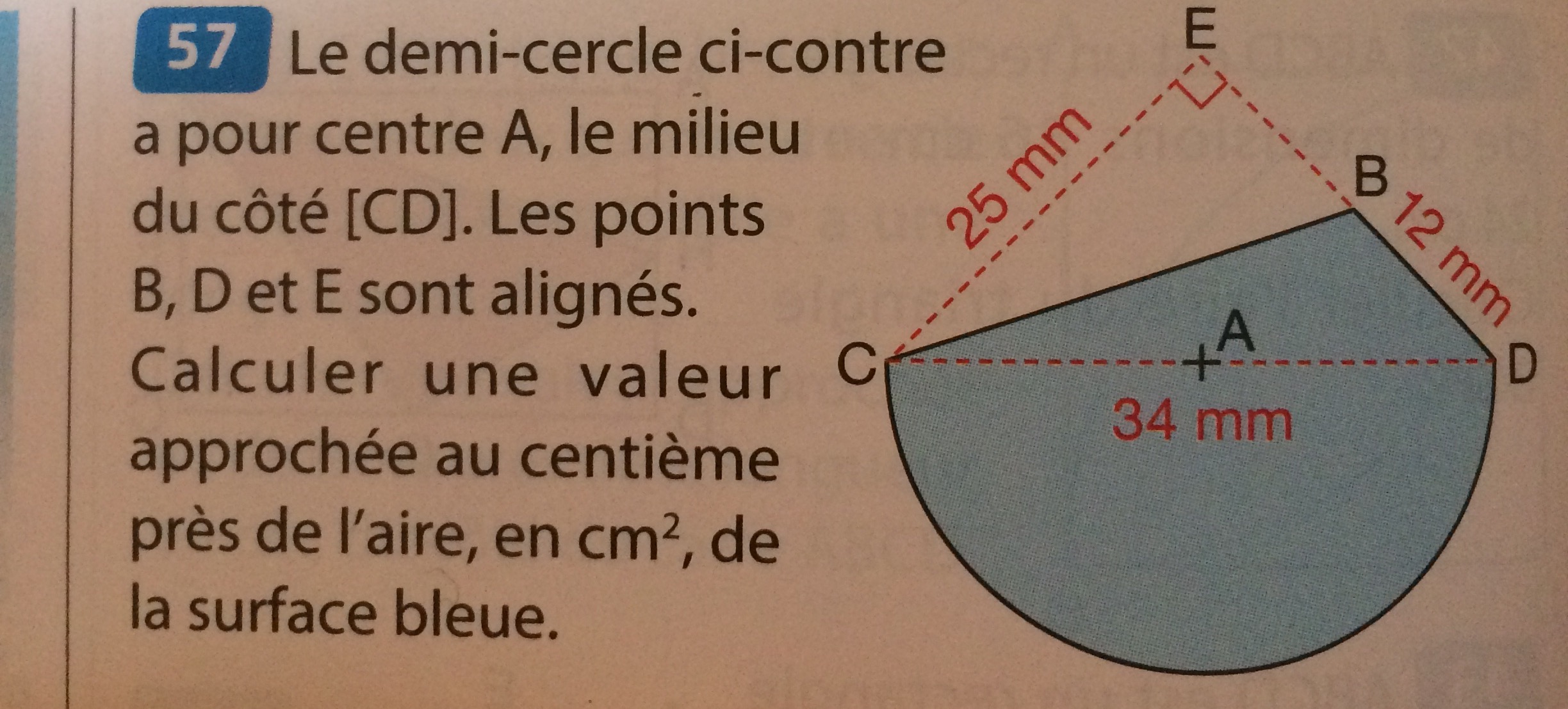 Bonjour, j'ai reussi à calculer l'aire du demi cercle mais je ne sais pas comment calculer l'aire du triangle!