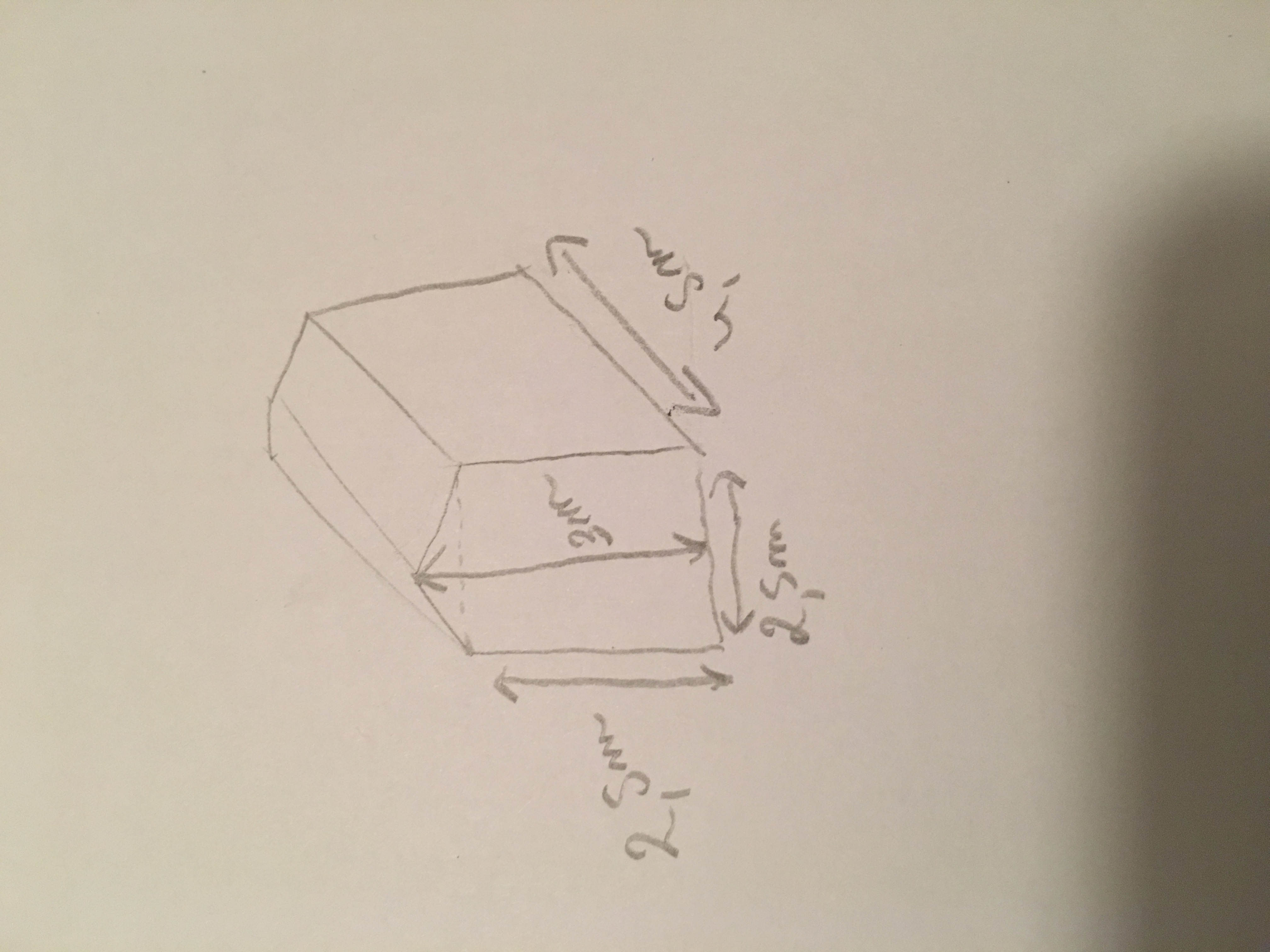 Je trouve 33,75 m^3 pour le volume de la cabane mais je ne suis vraiment pas alaise avec ce type de calculs donc j'aimerais savoir si c'est correct!