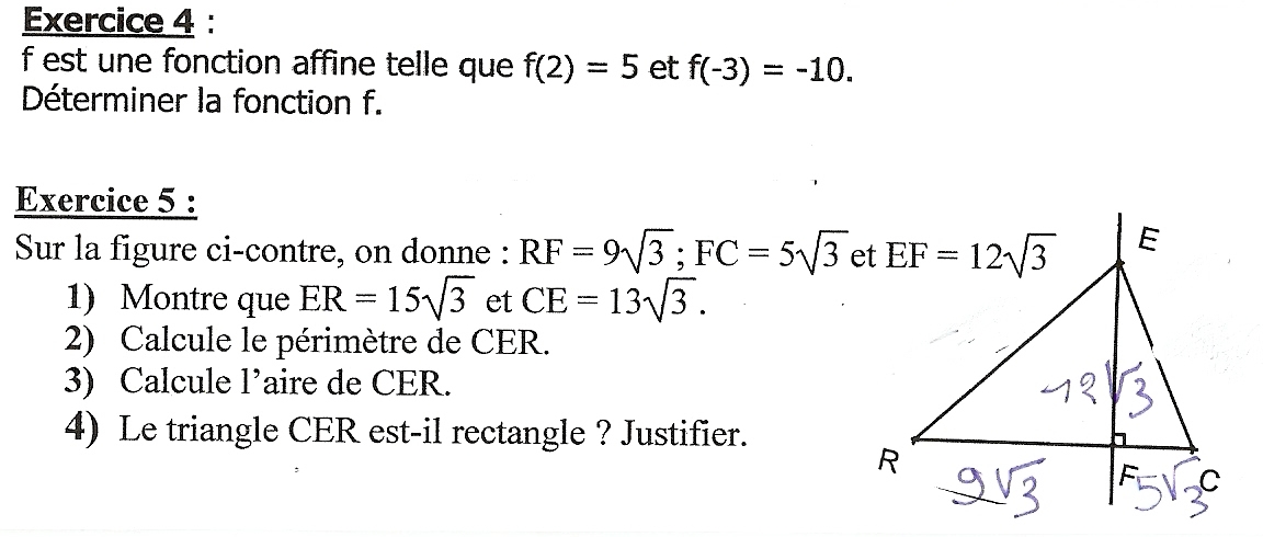 Voulant commencer par la longueur Ec, voyant que le triangle FEC est rectangle en F, j'ai donc appliqué le théorème de Pythagore.