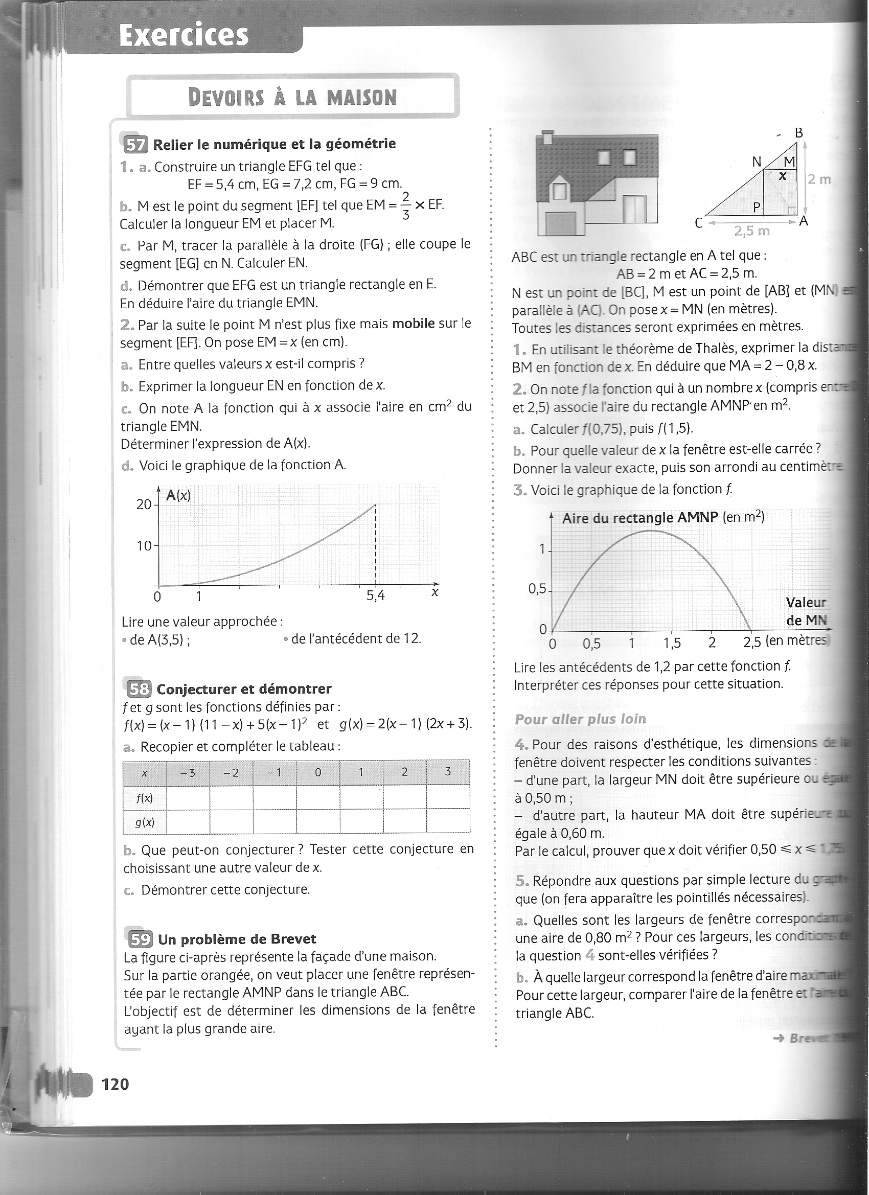 Il s'agit maintenant de remplacer BA par 2, MN par x et AC par 2,5 pour pouvoir exprimer MN en fonction de x.