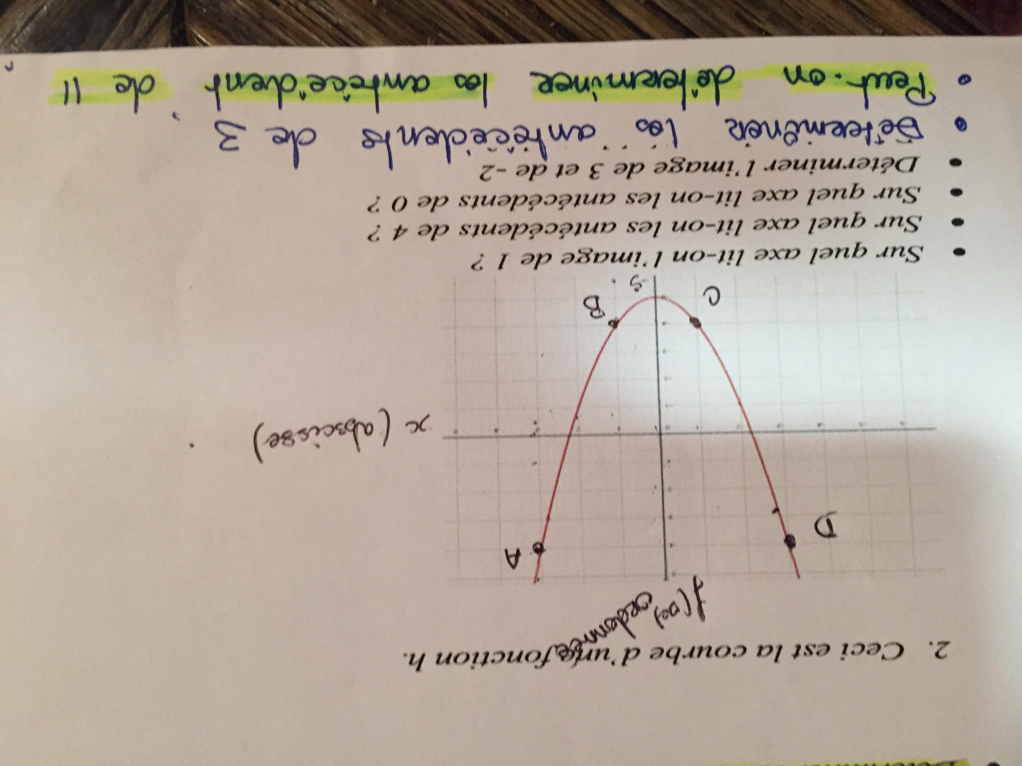 Tu pourrais calculer les images si on te donnait l'expression h(x) de la fonction h (par exemple h(x)= x²+2x -3)