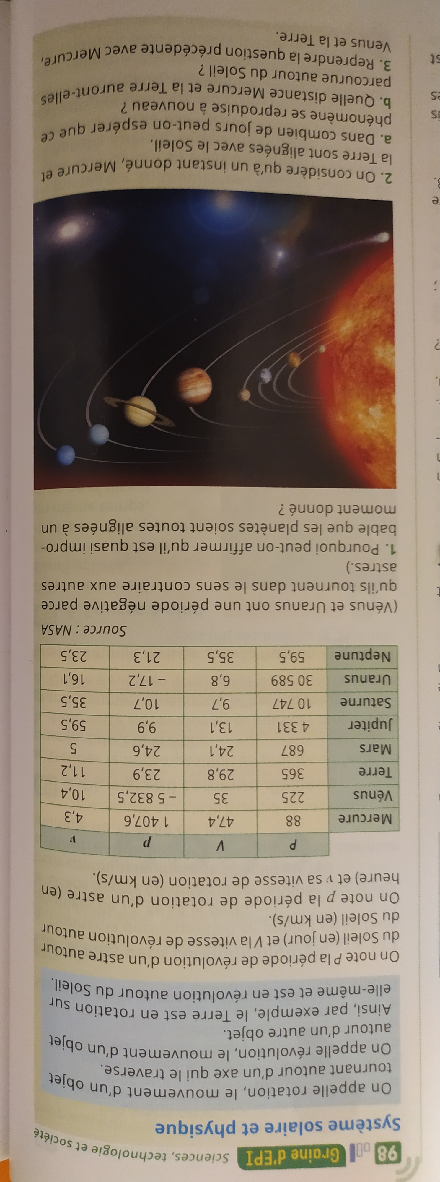 Si Mercure et Vénus sont alignés avec le soleil , la prochaine fois qu'ils seront alignés avec l'astre, Mercure aura parcouru 88 * k avec k entier et Vénus 225 k' donc tous les multiples commun à 88 et 225.