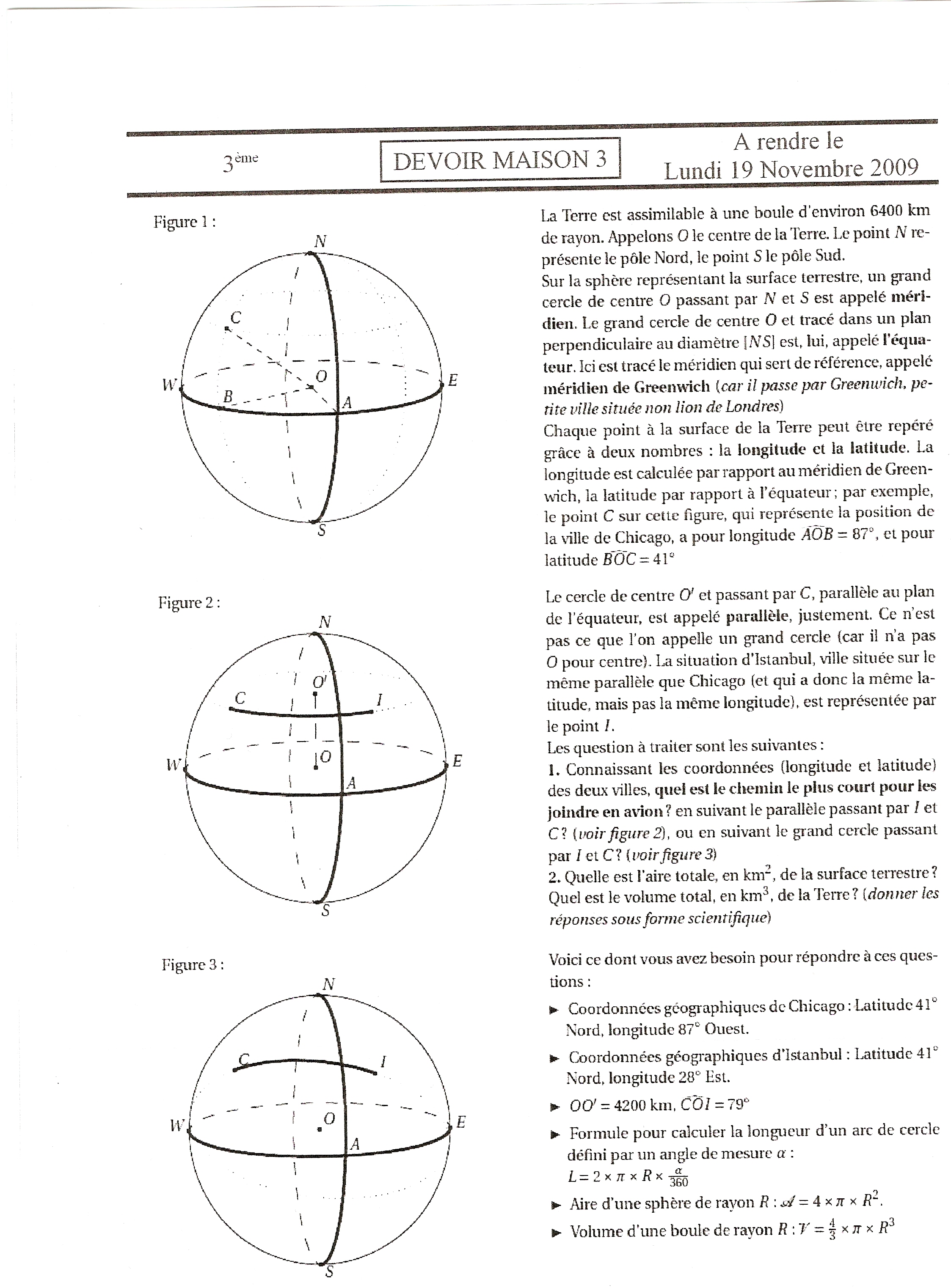 1. connaissant les coordonnées des deux villes, quel est le chemin le plus court pour les joindre en avion ? ( figure 2 ou 3 )