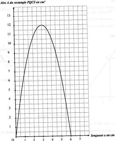 1) L'aire du rectangle PQCS est-elle proportionnelle à la longueur x ? Justifiez en utilisant uniquement le graphique.