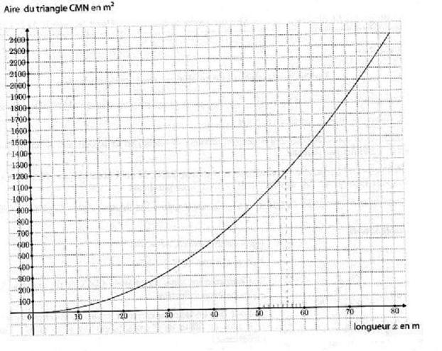 3)On a représenté au dos de la feuille d'aire du triangle CMN en fonction de x (lorsque x varie entre 0 e 80).
