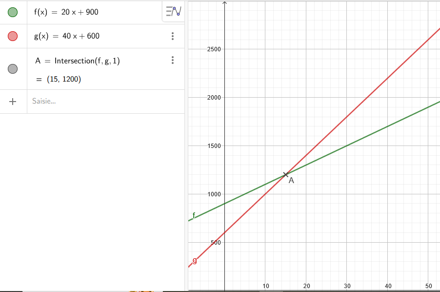 Le problème est que lorsque je trace la fonction f(x) = 80x + 3600 sur GéoGébra, j'obtiens ce dessin la : Ce n'est pas normal?