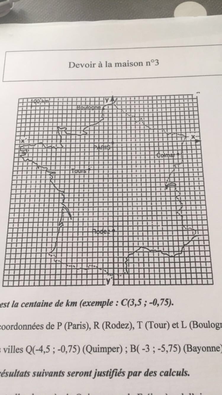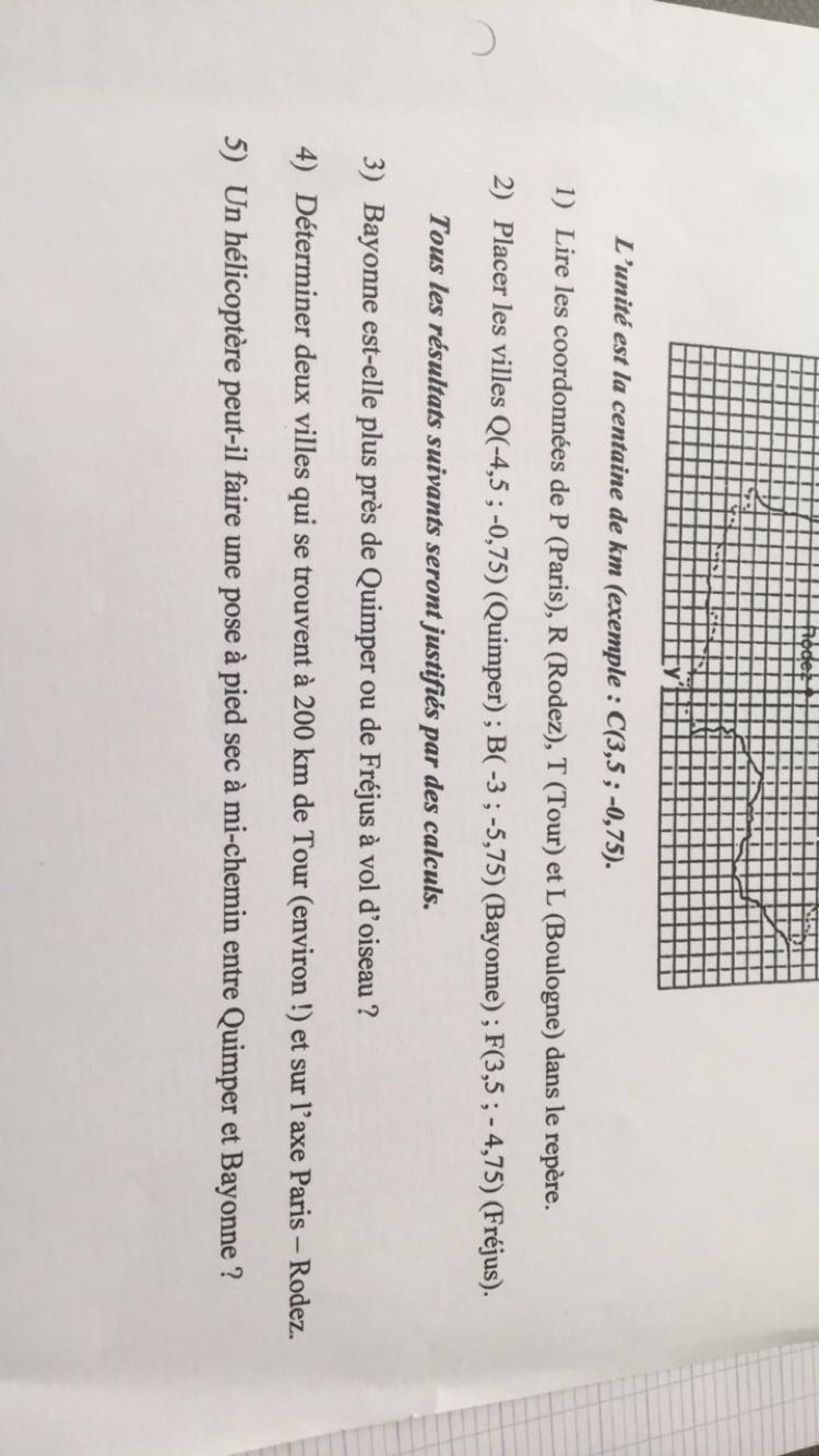 Tu as un repère et on te demande de lire les coordonnées de points placés sur la carte : pour un point donné, il suffit de lire sa position sur l'axe horizontal (abscisse) et sa position sur l'axe vertical (ordonnées)