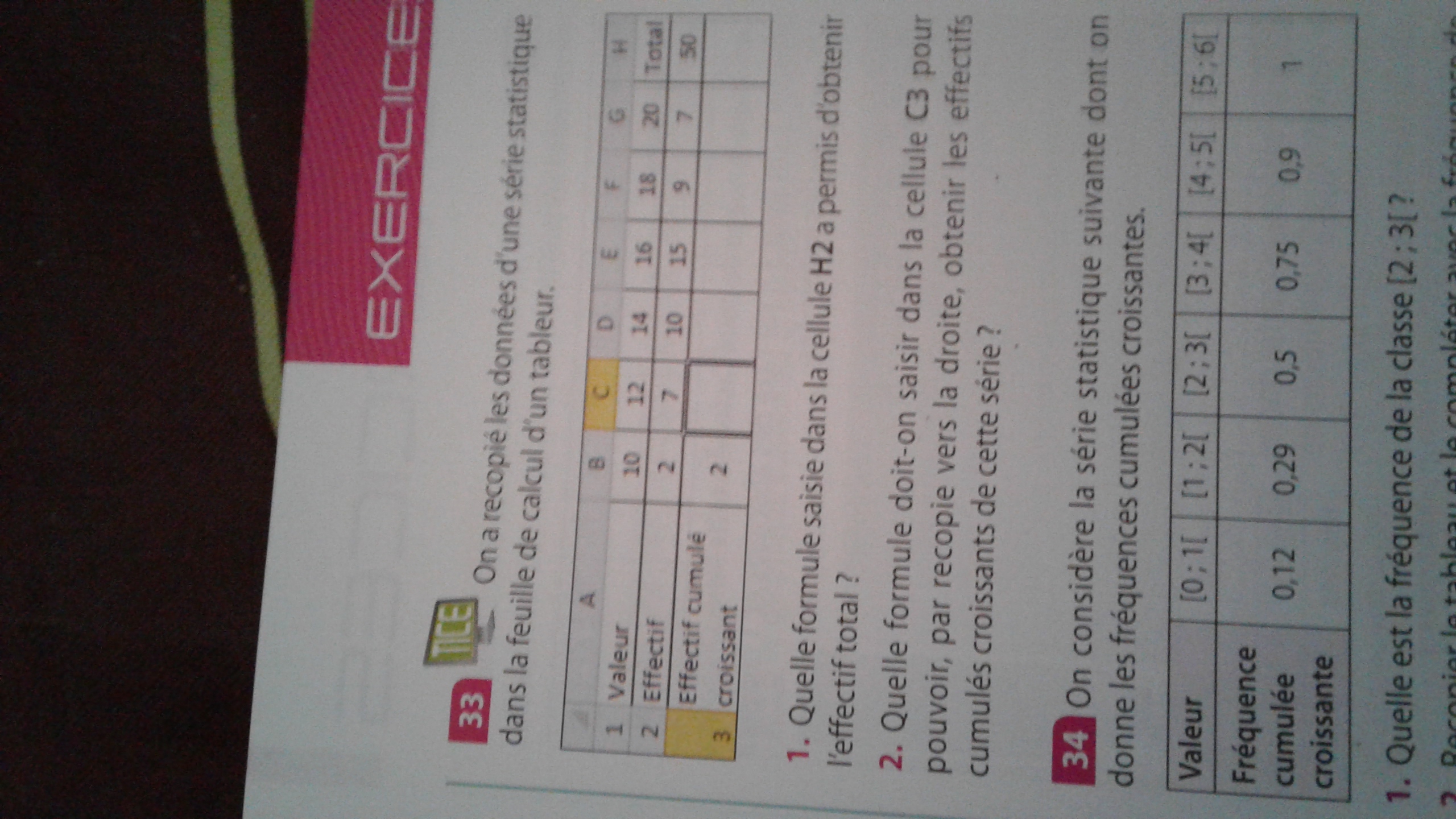 la formule demandée en C3 doit te permettre d'obtenir les effectifs cumulés croissants quand tu vas la dupliquer vers la droite.