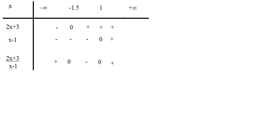 Pour g(x), dans le tableau de signes, sur une ligne vous étudiez le signe de (2x+3), en dessous le signe de x-1 et sur la dernière le signe du quotient.