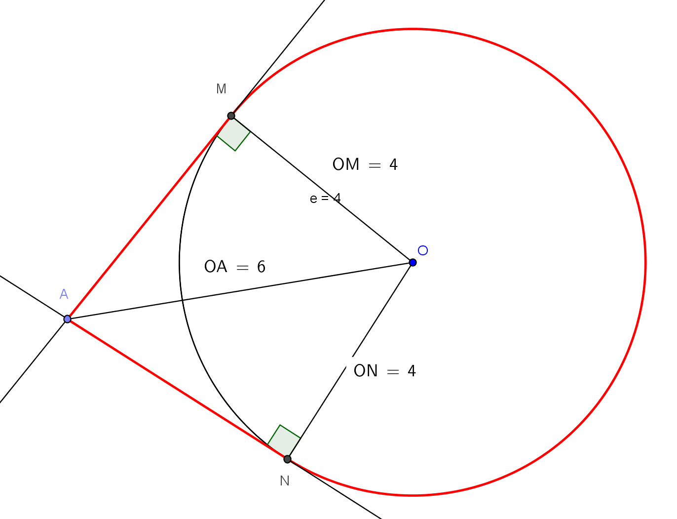 Si on essaie de comprendre ce qui a été dit, il faut calculer la longueur de la ficelle qui serait attachée en A, qui ferait le tour du cercle et qui reviendrait en A (en rouge sur la figure : Pour le calcul, de MA et NA (même longueur), il s'agit d'appliquer un théorème bien connu dans les triangles rectangles OMA et ONA.