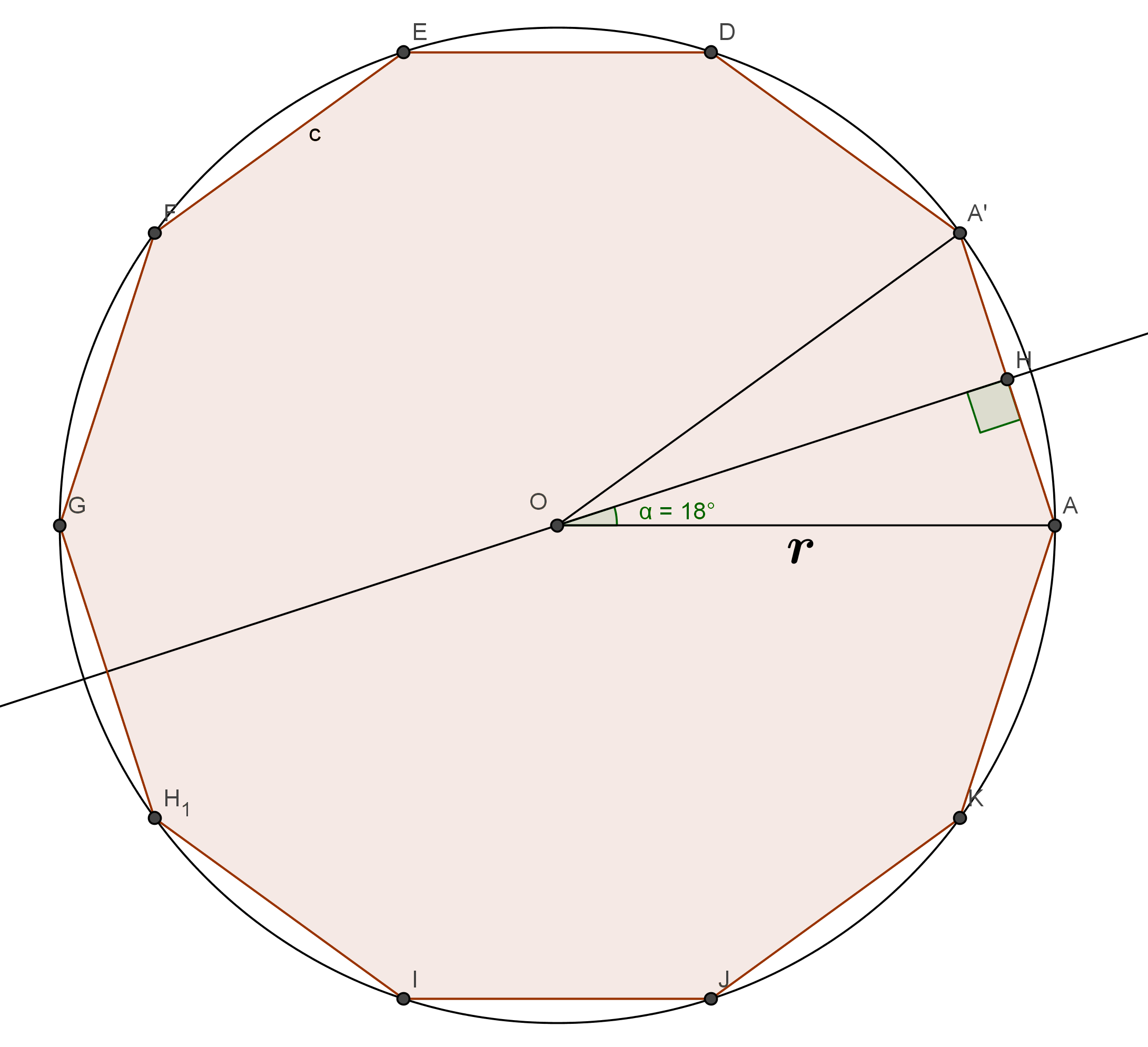 Julien a écrit :Bonjour, pourriez-vous me dire comment déterminer la valeur exacte en fonction de r d'un décagone régulier en utilisant la configuration de la bissectrice s'il vous plaît ?