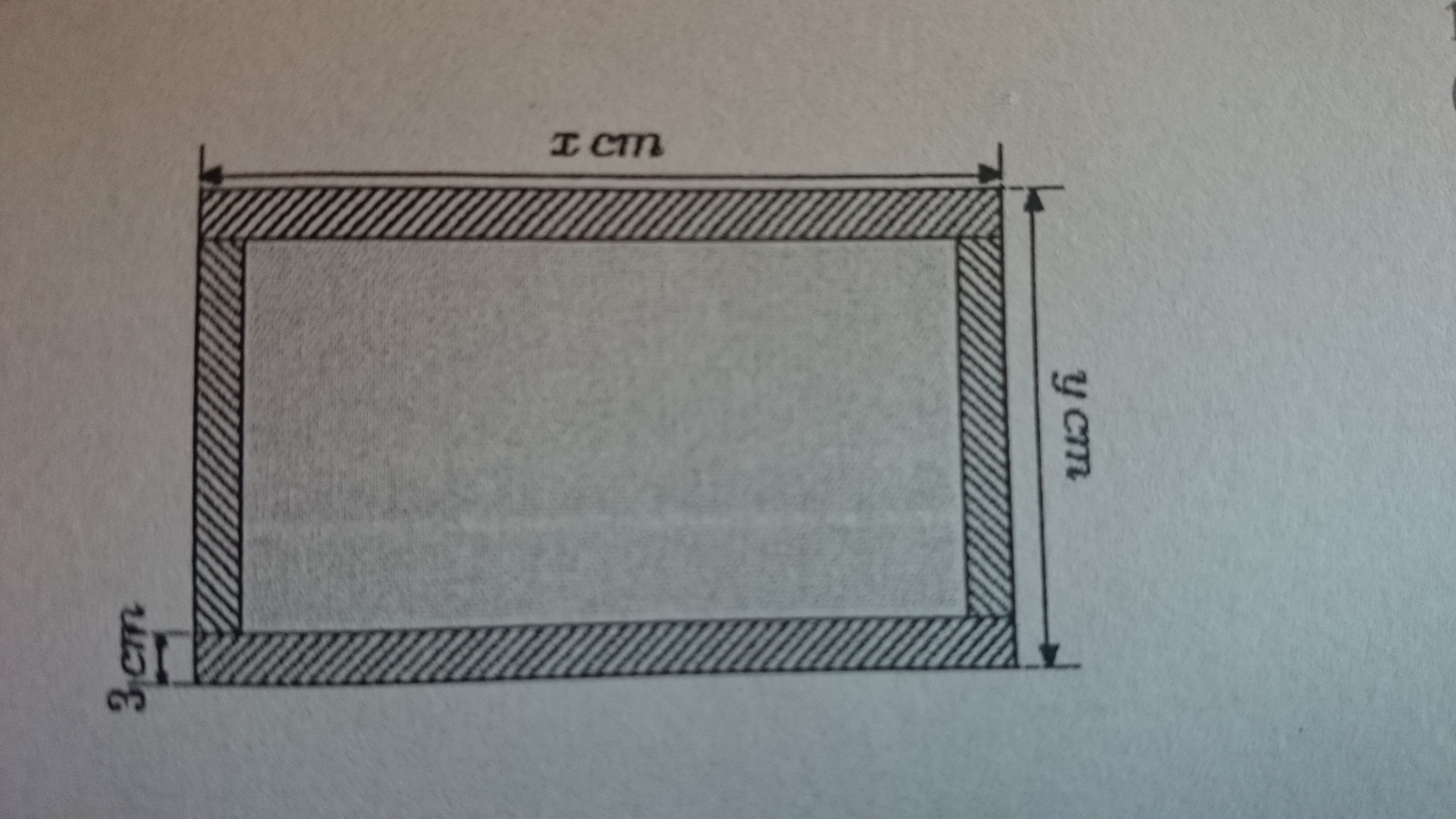 Pour l'aire intérieur du cadre, tu as un rectangle de côté x-6 et y-6, donc son aire est .... (je te laisse terminer !).