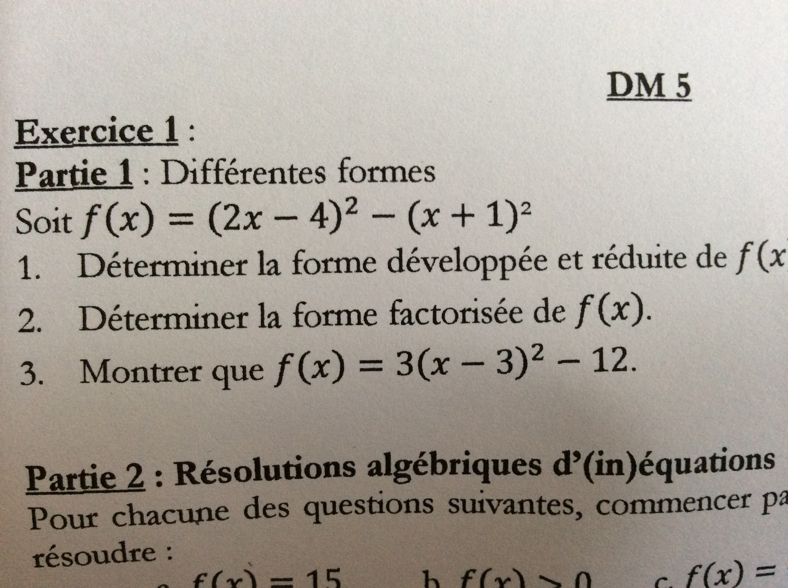 Pour la première question, on te demande de développer f(x).