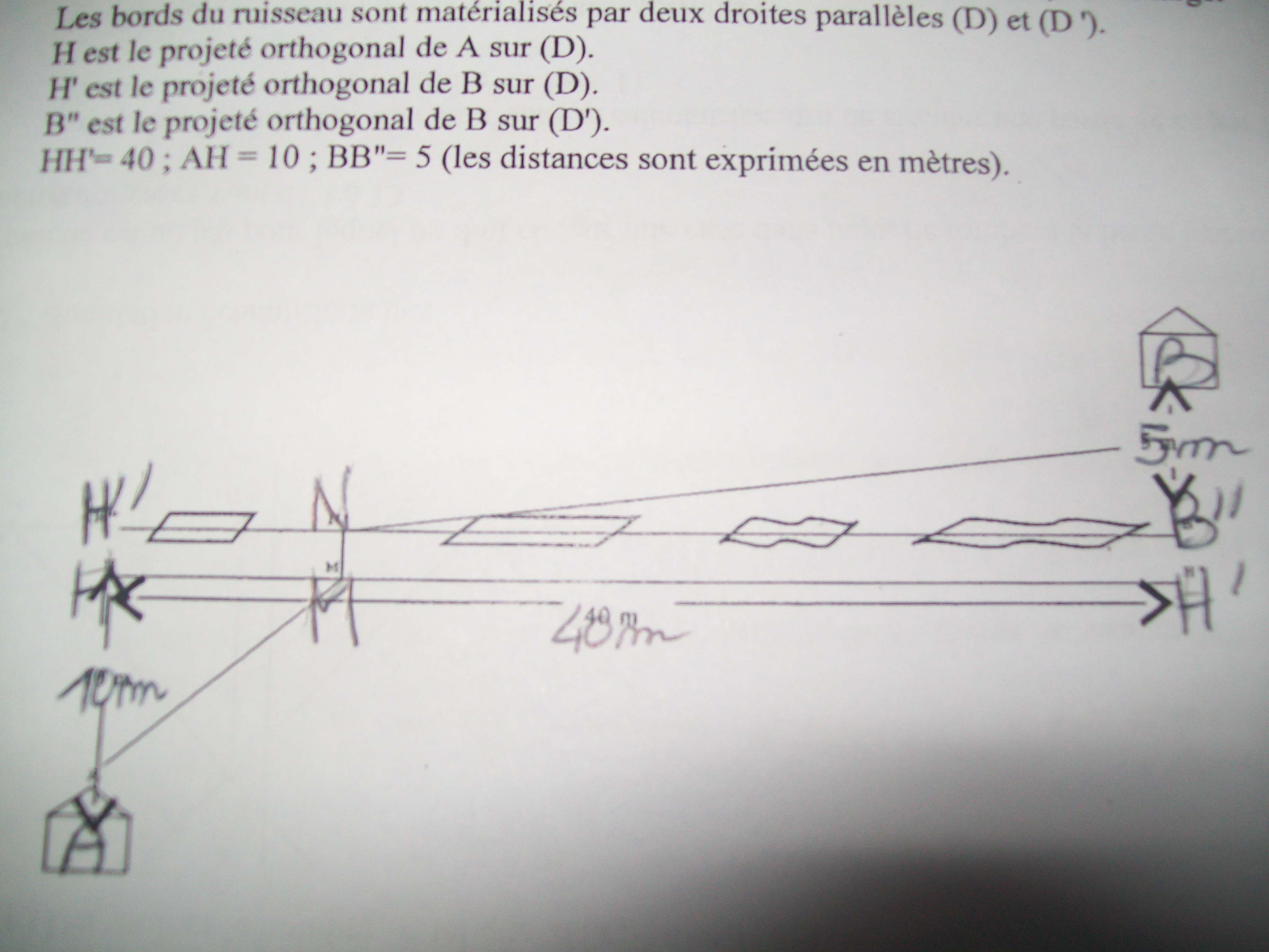 ennoncé : Les maisons d'adrien (A) et benoit (B) sont séparées par un ruisseau de 2,5m de large .