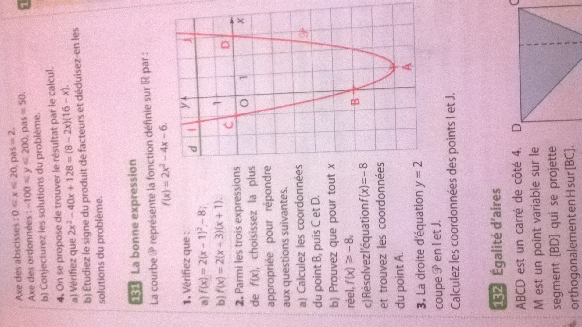 Mais comme tu le dis c'est la question suivante, donc on revient à ce que tu sais : \(f(x) = 2(x-1)^2-8\) ou encore \(f(x) = -8 + 2(x-1)^2\) ce qui signifie que pour calculer \(f(x)\) tu dois ajouter le double d'un carré à \({-8}\), je pense que tu peux conclure.
