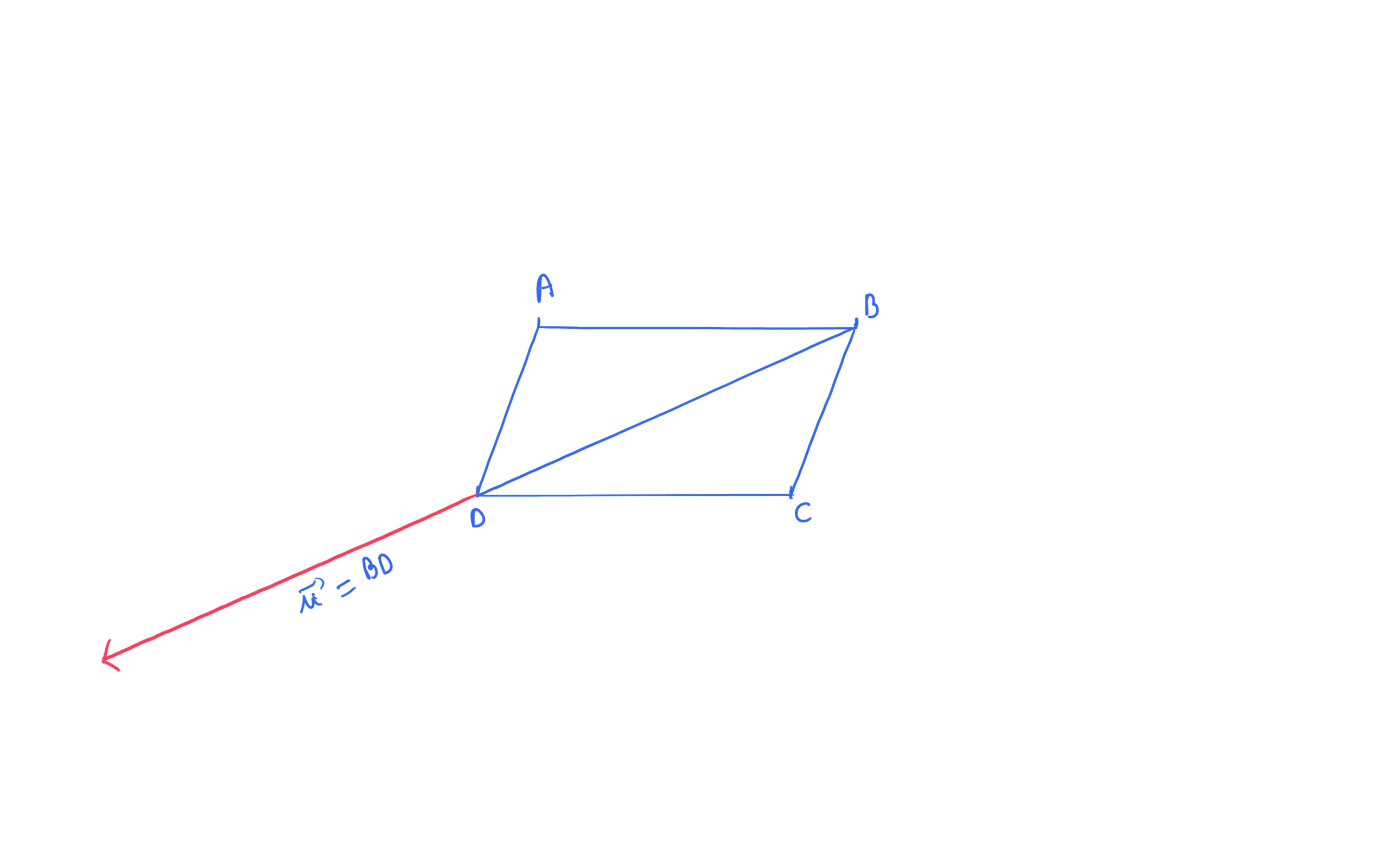 Pour placer le point M, il faut construire le vecteur \(\vec{BD}\) avec le point D comme origine, ainsi tu pourras faire la somme bout à bout et tu auras construit le point M