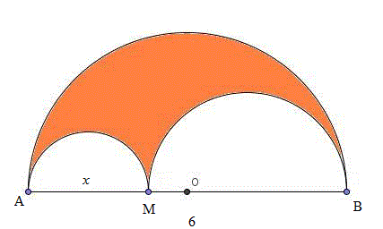 La suite du DM porte sur un arbelos d'Archimède, j'ai réussi sans difficultés la première question (qui demandais le périmetre de l'arbelos). Cependant je bloque sur la question deux qui demande l'aire de l'abelos. Données : \(AM= x\)\(AB = 6\).