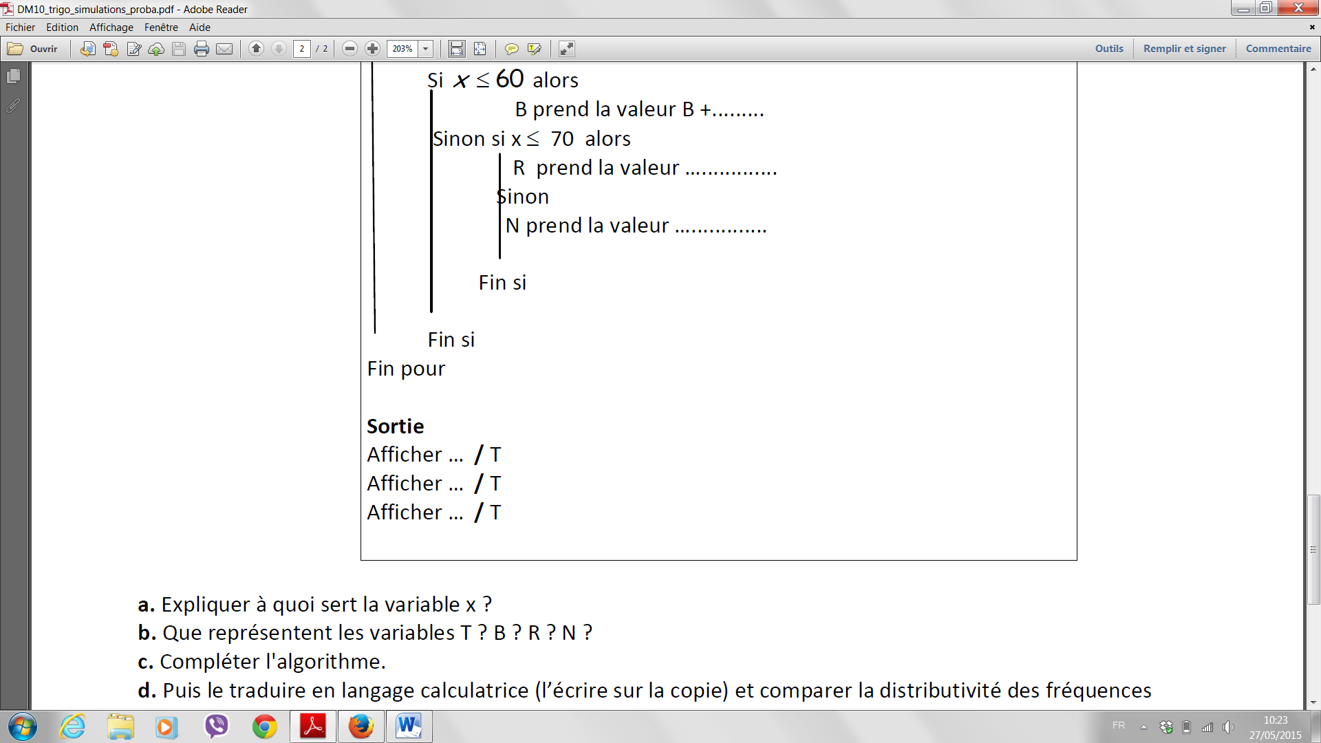 Re: PROBABILITE ALGORYTHME