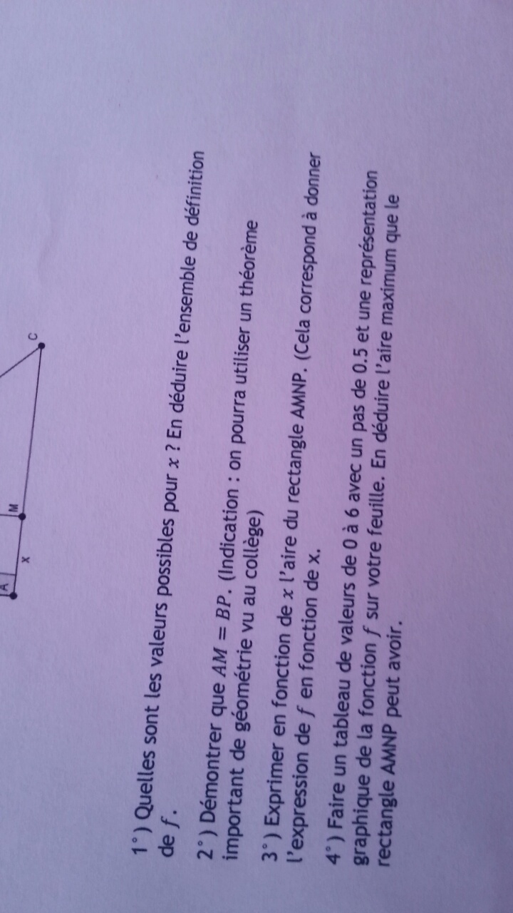 Question 3: AP = AB - x ? Mais c'est AM = x et non BP... Je suis perdue car il faut trouver l'aire du rectangle AMNP :(