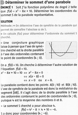 Je souhaiterais un complément d'informations concernant l'explication qui m'est donnée sur la méthode à employer pour déterminer le sommet d'une parabole (voir le fichier joint).