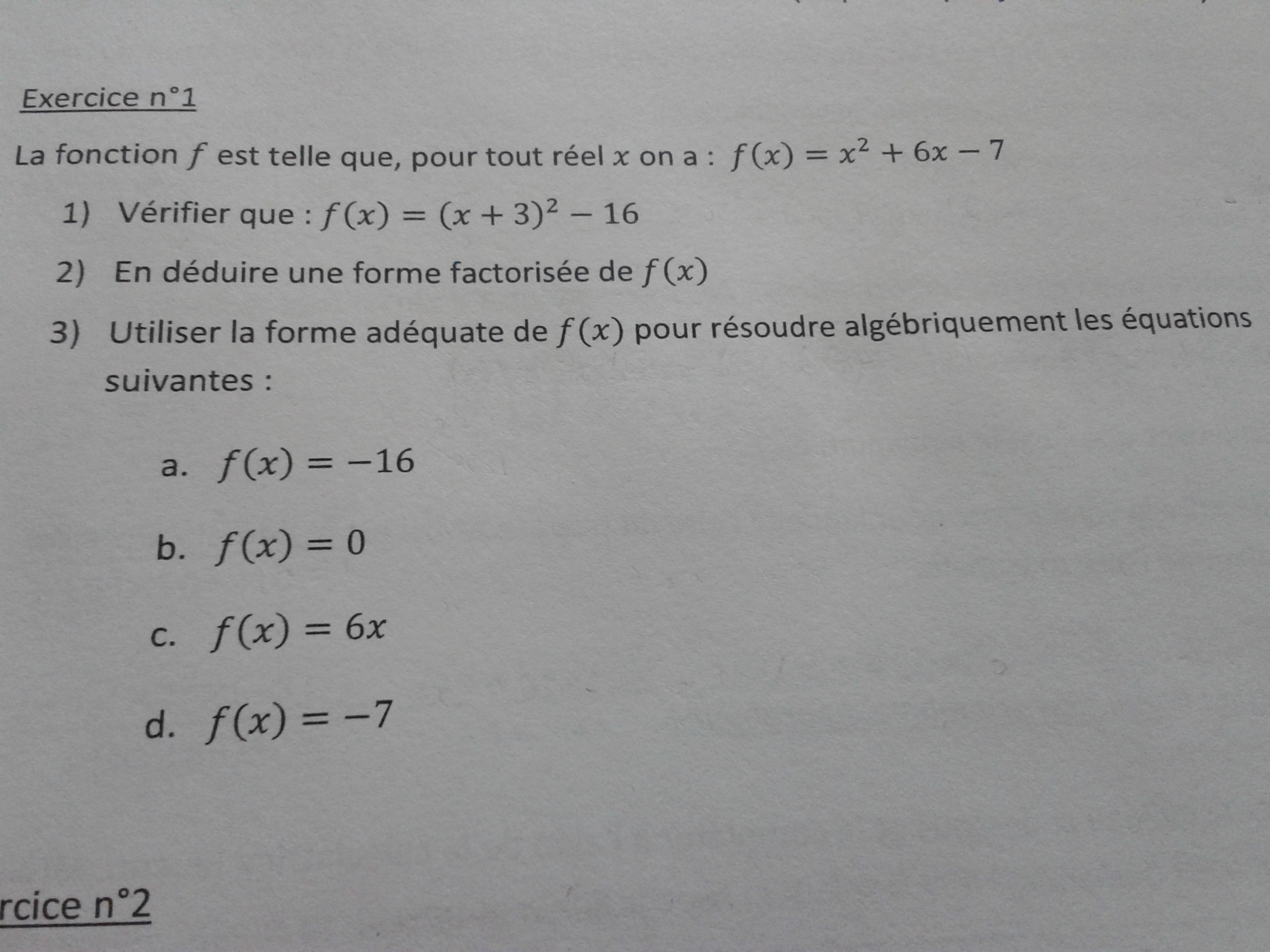 bonjour j aimerai avoir de l aide pour cette exercice que je vous joint j ai réussi à faire le 1 mais pas le reste. Merci d avance