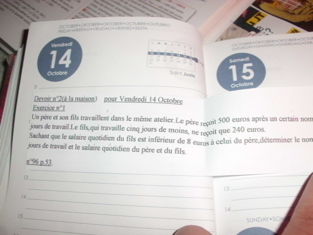 par quel exercice commencer ? Par le problème du travail ! Je vous propose de noter n le nombre de jour travaillés par le père. Alors le fils a travaillé ... jours. A partir de là, comment trouver le salaire quotidien du père ? du fils ? Une information permet de mettre ces deux valeurs en relation...