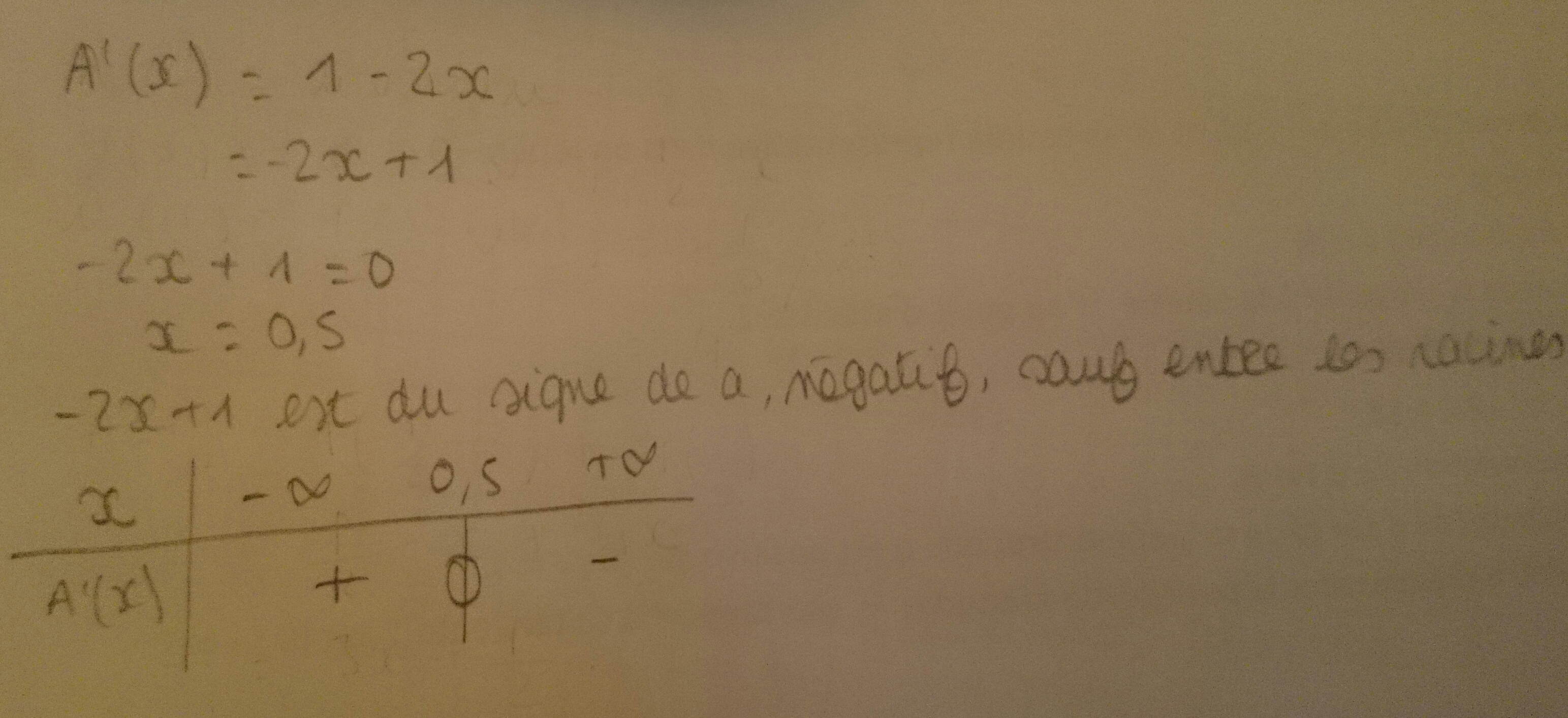 il faut considérer \(\frac{p}{2}\) comme un nombre de sorte que \(A'(x)=-2x+\frac{p}{2}\).