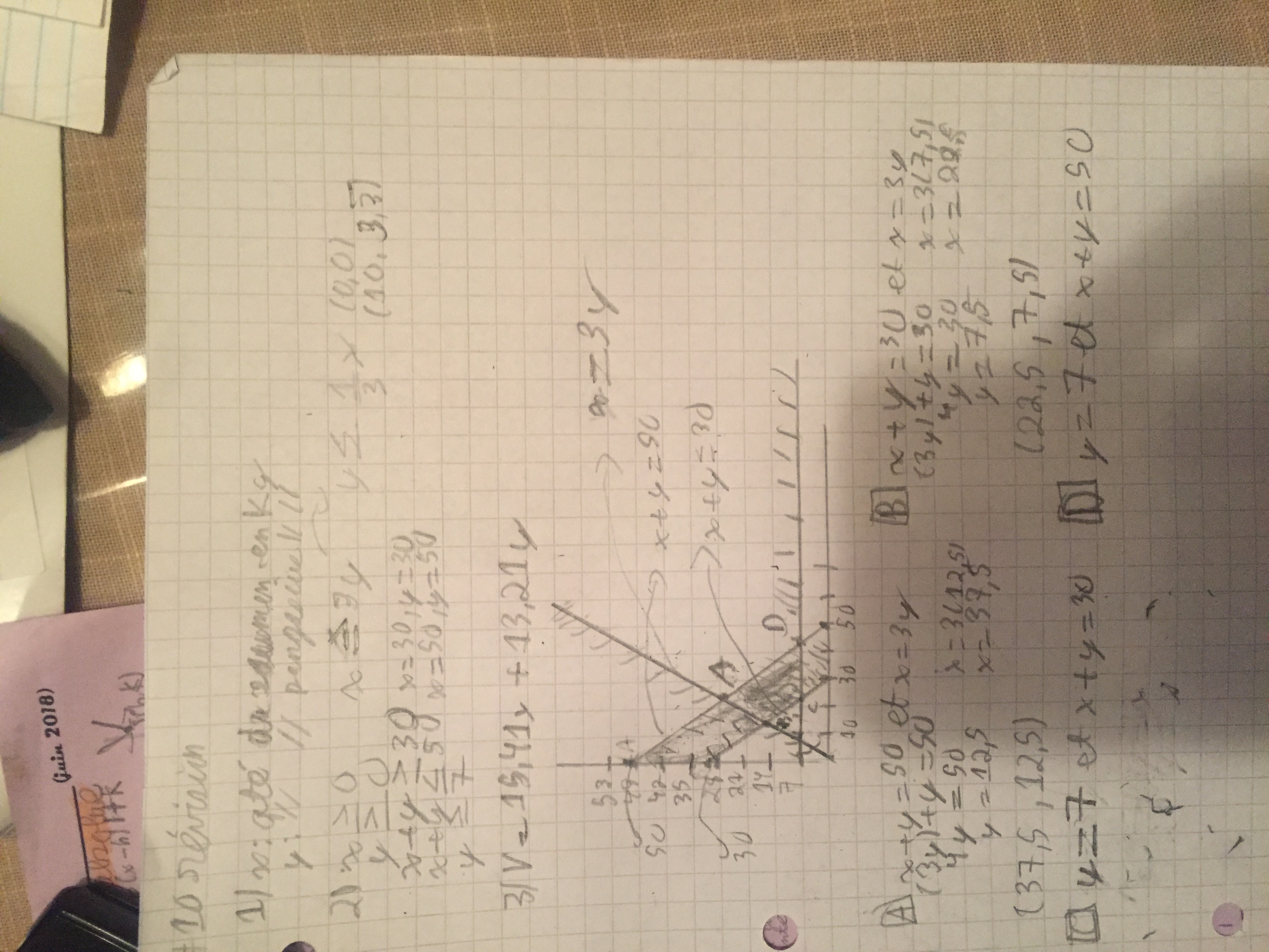 Pour C, tu as y=7 et x+y=30 donc x = 23