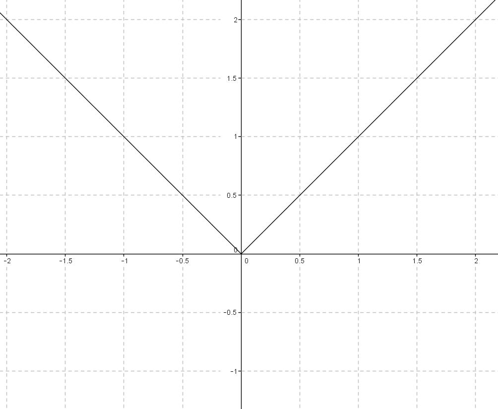 tu dois avoir une fonction en deux morceaux : une demi-droite en diagonale qui descend et une demi-droite en diagonale qui monte.